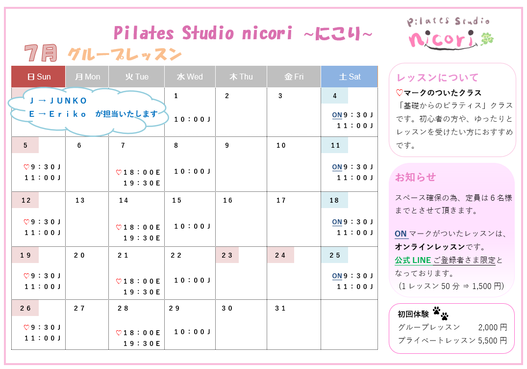 また、状況により記載されているレッスン内容等は急遽変更されることもございます。