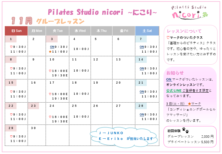 12月のグループレッスンのスケジュールです![]()