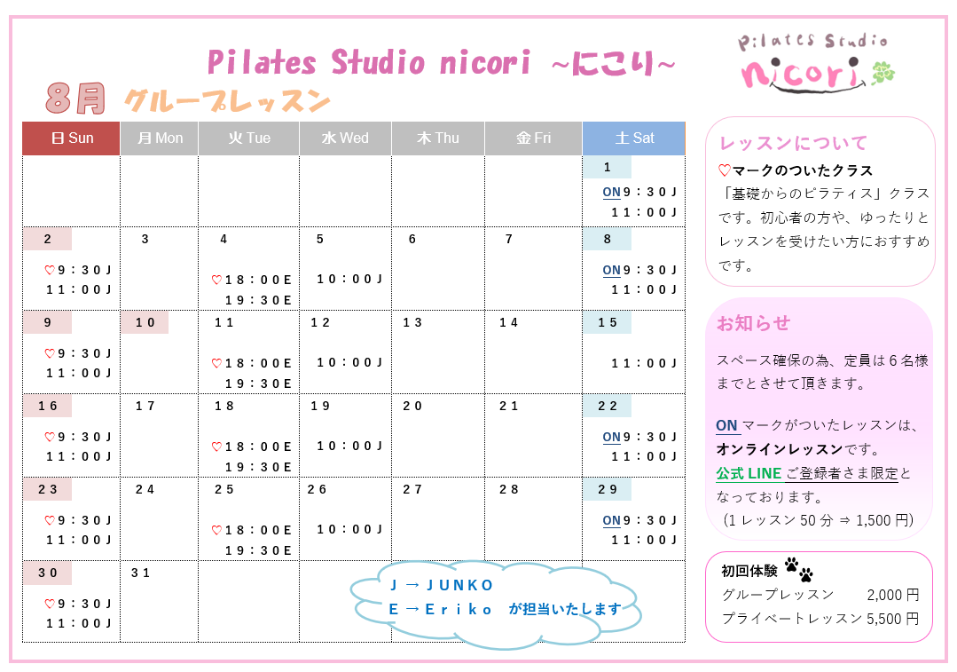 ◆ 1レッスンの定員を6名様までとさせて頂きます。